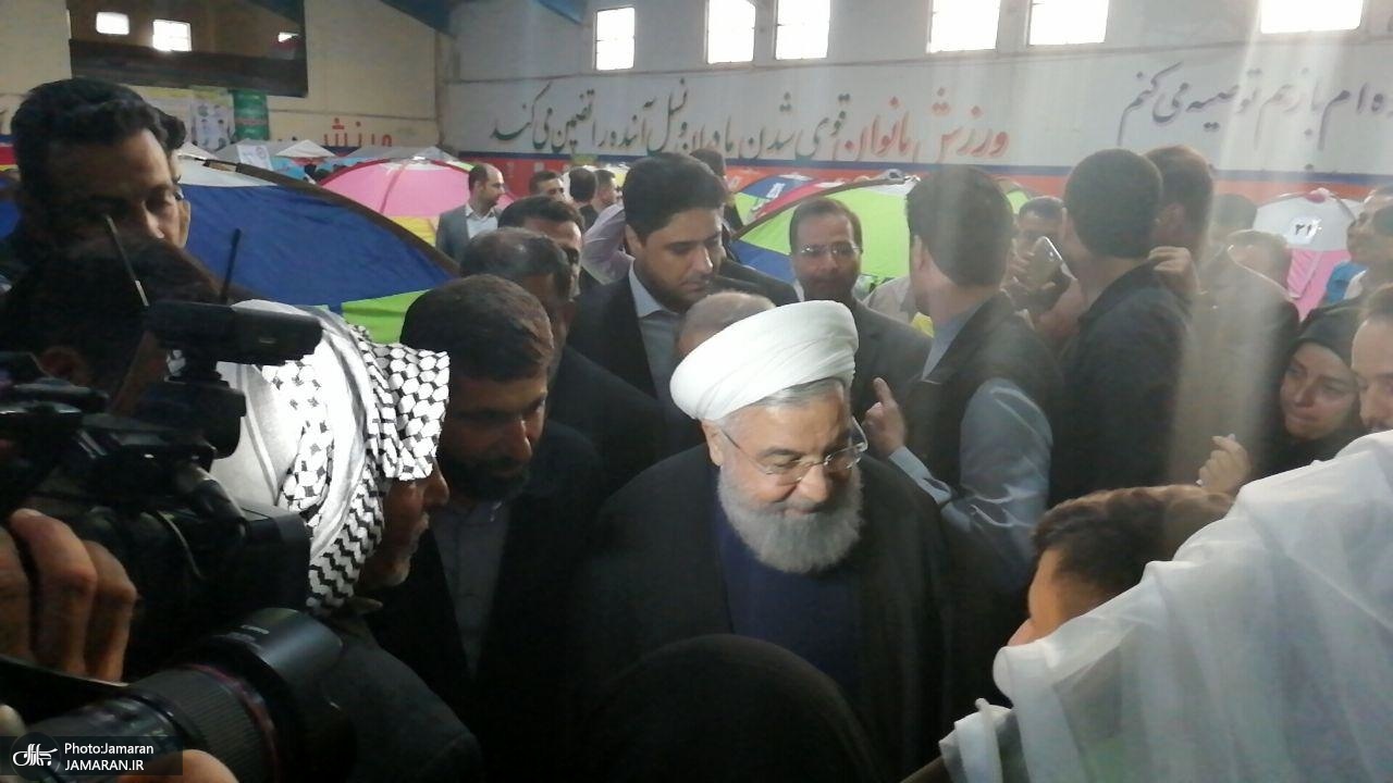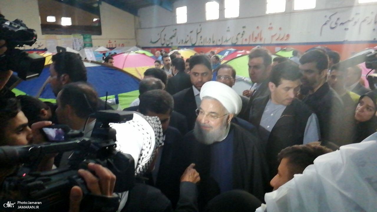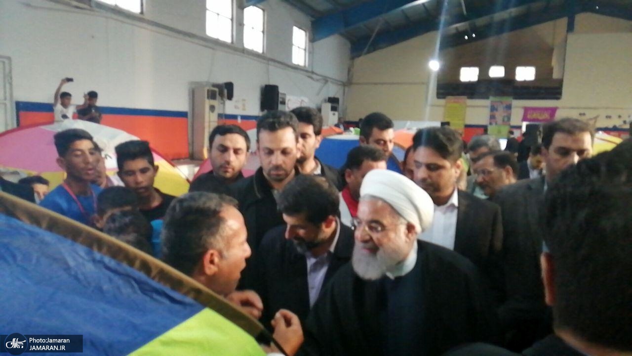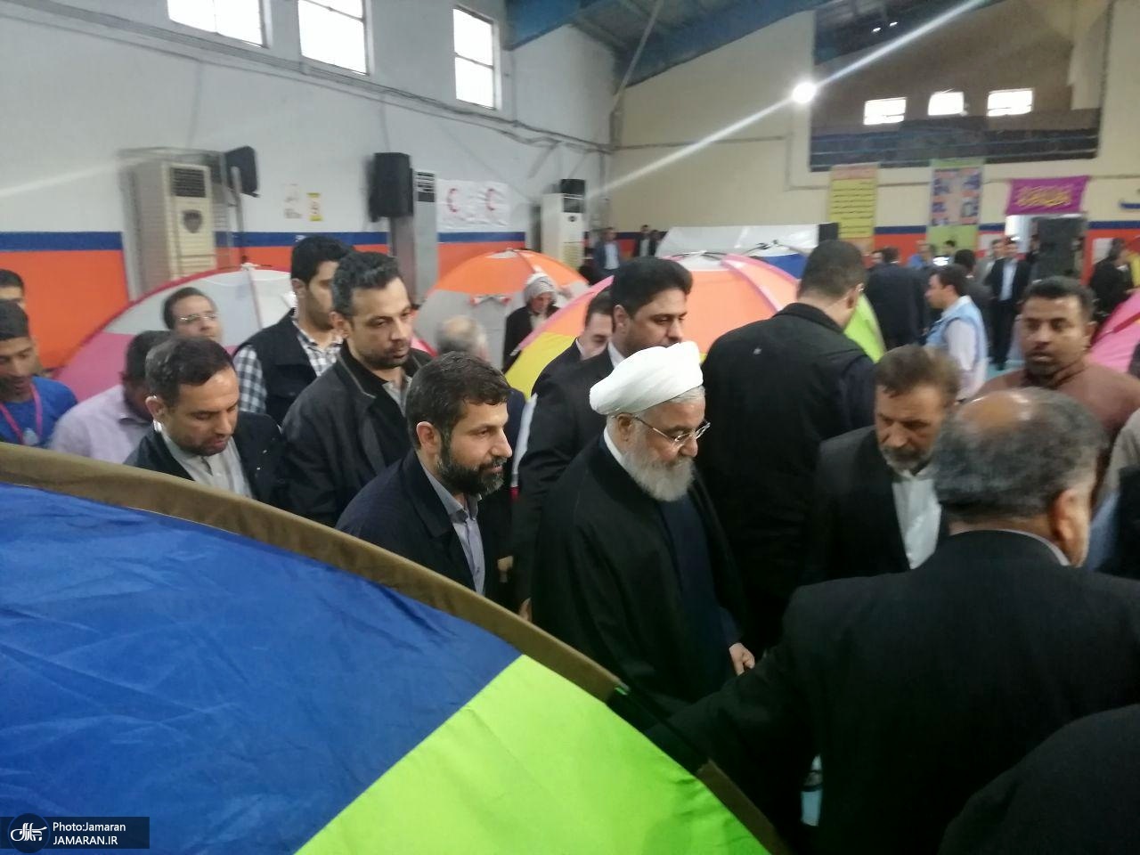 حضور رییسجمهور در اردوگاه اسکان اضطراری سیل زدگان در ورزشگاه تختی اهواز