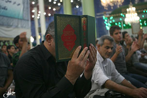 مراسم پرفیض دعا و نیایش و احیاء شب نوزدهم ماه مبارک رمضان با حضور حجت الاسلام والمسلمین سید حسن خمینی یادگار گرامی امام راحل و حضور عارفانه و عاشقانه مومنان و روزه داران در حرم مطهر بنیانگذار جمهوری اسلامی ایران برگزار شد . به گزارش پایگاه اطلاع رسانی و خبری جماران ، مراسم شب نوزدهم ماه مبارک رمضان با حضور حجت الاسلام والمسلمین سید حسن خمینی ، مداحان اهل بیت ،روزه داران و عزاداران در حرم مطهر امام خمینی(در حالی برگزار شد که لحظه به لحظه بر جمعیت داخل حرم افزوده می شد. این مراسم با قرائت کلام الله مجید و صدای قاری بین المللی ابوالقاسمی آغاز و پس از مرثیه سرایی و مداحی و دعای پرفیض جوشن کبیر پایان یافت . در پایان این مراسم پرفیض مردم خداجوی و مومن قرآنها را بر سر نهاده و از خداوند باری تعالی طلب آمرزش و مغفرت نمودند .