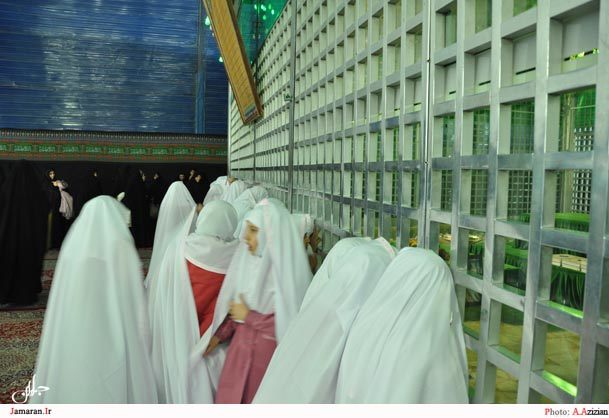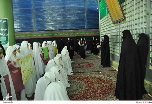 مراسم جشن تکلیف دختران مجتمع آموزشی تزکیه سعادت آباد تهران با حضور در حرم مطهر امام راحل و بیعت با آرمانها و اندیشه های امام خمینی(س) برگزار شد.
