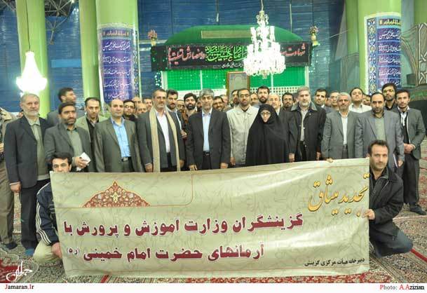 جمعی از گزینشگران وزارت آموزش و پرورش به همراه کیومرث هاشمی قائم مقام وزیر آموزش و پرورش و دبیر هیات مرکزی گزینش این وزارتخانه با آرمان های والای امام خمینی(س) تجدید میثاق کردند.