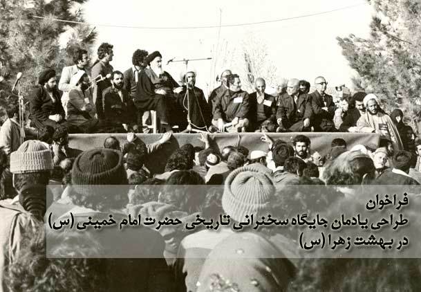 سازمان زیبا سازی شهر تهران با همکاری موسسه تنظیم و نشر آثار امام خمینی (س) در فراخوانی از طرحان و هنرمندان دعوت کرد تا طراحی یادمان جایگاه سخنرانی تاریخی حضرت امام خمینی (س) در بهشت زهرا (س) شرکت کنند .
