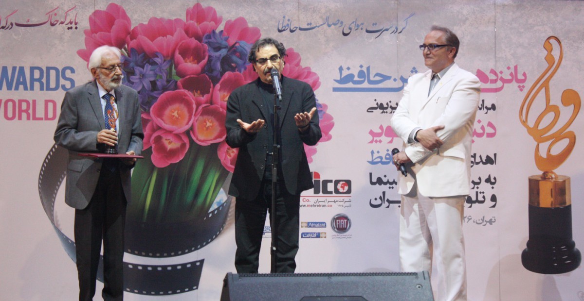 «شهرام ناظری» برنده جایزه تندیس حافظ بهترین ترانه از پانزدهمین جشن سینمایی، تلویزیونی «دنیای تصویر» گفت: دریافت جایزه تندیس حافظ از دست اهالی سینما و همچنین از دست «جمشید مشایخی» استاد و یکی از اسطوره‌های سینما خیلی برایم غنیمت و افتخار بزرگی است.