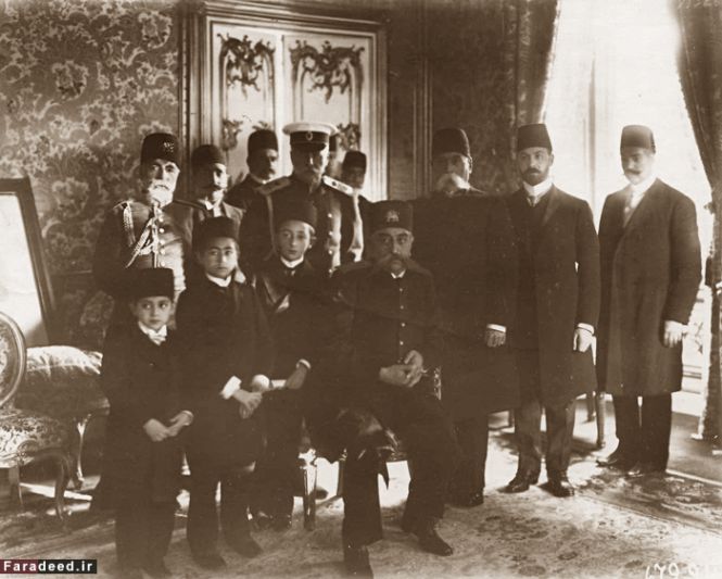 مطفرالدین شاه در کنار تنی چند از مقامات روس و ایرانی