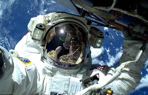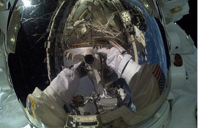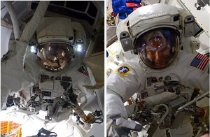 فضانوردان ایستگاه فضایی بین‌المللی (ISS) در زمان انجام مأموریت پیاده‌روی فضایی برای کابل‌کشی خارج از ایستگاه، عکس‌های سلفی‌ از خود تهیه کردند.