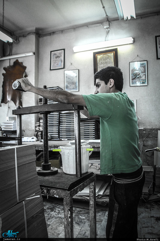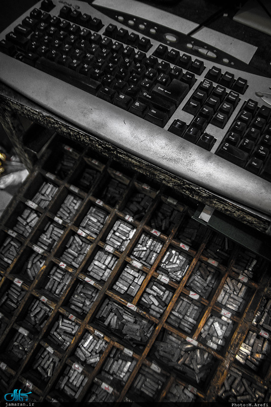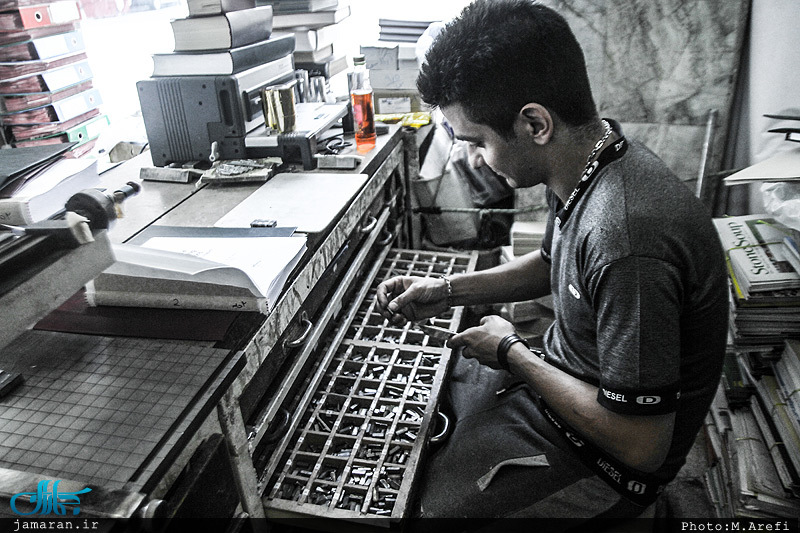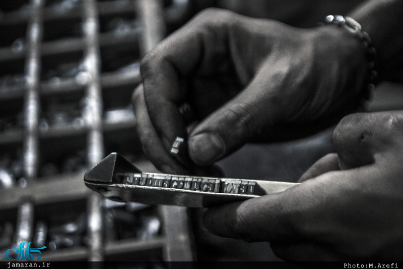 مرد جوان حروف سربی را از «گارسه»(جعبه مشبک حاوی حروف سربی) به سرعت برمی داشت و بدون این که به آنها نگاه کند، در «وِرْساد»(ظرف لبه دار کوچکی که در دست چپ خود نگاه داشته بود) کنار هم می چید. چشمش به متن بود و دستش که جای حروف را می شناخت، به جای چشمش عمل می کرد. انگشتش شیار نشانه روی پایه حرف(راده) را لمس می کرد و به راهنمایی آن، همه حروف را در یک جهت کنار هم قرار می داد. حروف چین بعد از چیدن هر چند سطر، حروف چیده شده را به رانگا(سینی فلزی چهارگوشی که کنار دست او روی میز قرار داشت) منتقل می کرد. حروف چیده شده، بعد از نمونه گیری و تصحیح آماده چاپ می شد. همه وسایل اصلی حروفچینی در ایران، به نام روسی آنها خوانده می شود و همین خود نشانه مسیری است که فن حروف چینی و چاپ برای ورود به ایران طی کرده است. امروزه با ورود تکنولوژی های جدید و استفاده از رایانه، حروف چینی و صفحه بندی دستی جای خود را به نرم افزارهایی داده است که کار را تا حد زیادی ساده کرده و از خطرات استفاده از حروف سربی کاسته اند. اما هنوز هستند کارگاه های صحافی که از این شیوه برای طلا کوب جلد استفاده می کنند. مداومت دستانی که رزق حلال خود را با لمس حروف سربی به دست می آورد و مخاطرات زیادی که در این هم نوایی انسان و سرب نهفته است.