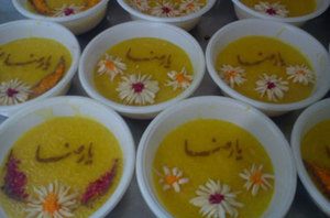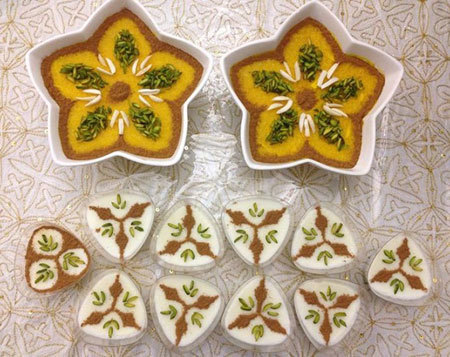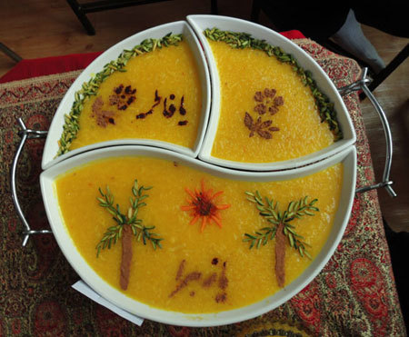 شله زرد از جمله دسرهایی است که بیشتر ایرانی ها آن را برای سفره افطار خود تدارک می بینند که می تواند علاوه بر لذت خوردن، به سفره نیز زیبایی ویژه ای ببخشد. در زیر طرح هایی برای تزئین ارائه شده است.