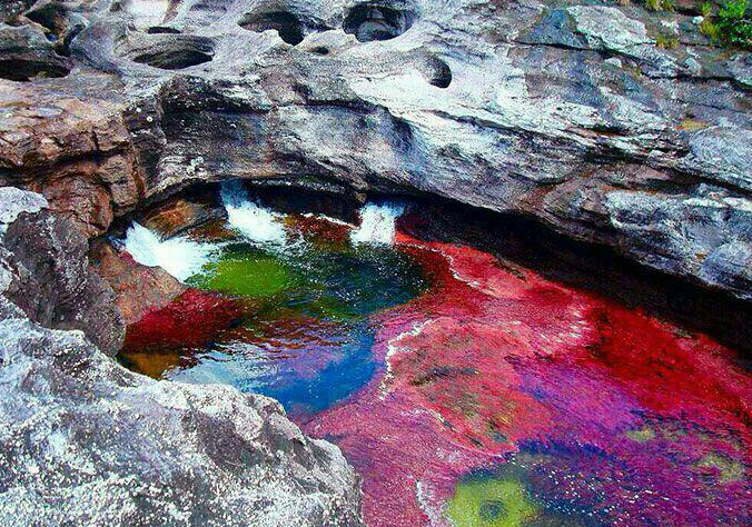 در کشور کلمبیا رودخانه ای زیبا در پنج رنگ قرمز، زرد، سبز و آبی تبدیل به رودخانه رنگین کمانی می شود.