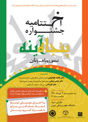 مراسم اختتامیه این جشنواره با همکاری بنیاد فرهنگی مهدی موعود (عج)، سه شنبه 3 خرداد ماه ساعت 14 در تالار ابن سینا دانشگاه علوم پزشکی تهران برگزار می شود.