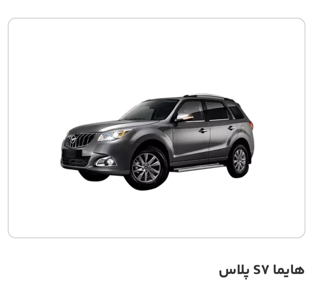 | هایما اس ۷ | ۱ میلیارد و ۱۹۰ میلیون و ۶۶۴ هزار تومان | ۱ میلیارد و ۵۸۹ میلیون تومان |