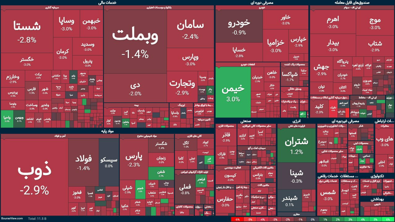 در بیست و سومین روز از بهمن ماه 1403، 93 درصد از بازار سرمایه با افت قیمت مواجه شد و روند خروج پول از بازار سرمایه ادامه یافت.