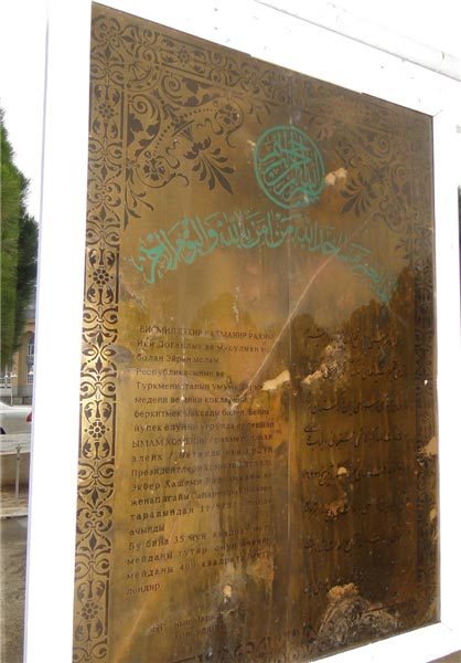 در این لوحه متنی به شرح زیر به دو زبان ترکمنی و فارسی نوشته شده است: