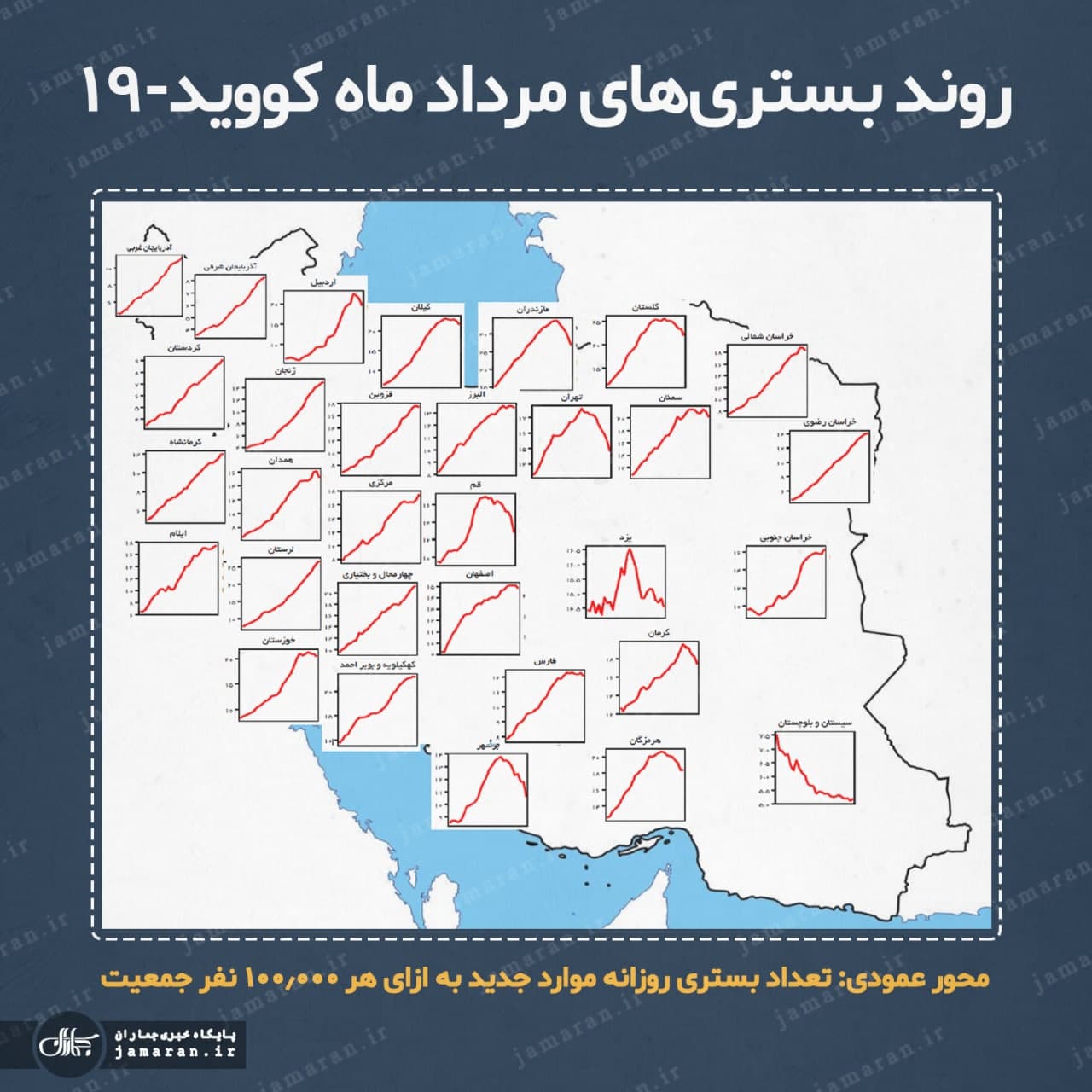 استان های با روند صعودی: آذربایجان غربی و شرقی، خراسان رضوی و جنوبی، کرمانشاه، کردستان، لرستان، زنجان چهارمحال و بختیاری، مرکزی، قزوین، کهگیلویه و بویر احمد