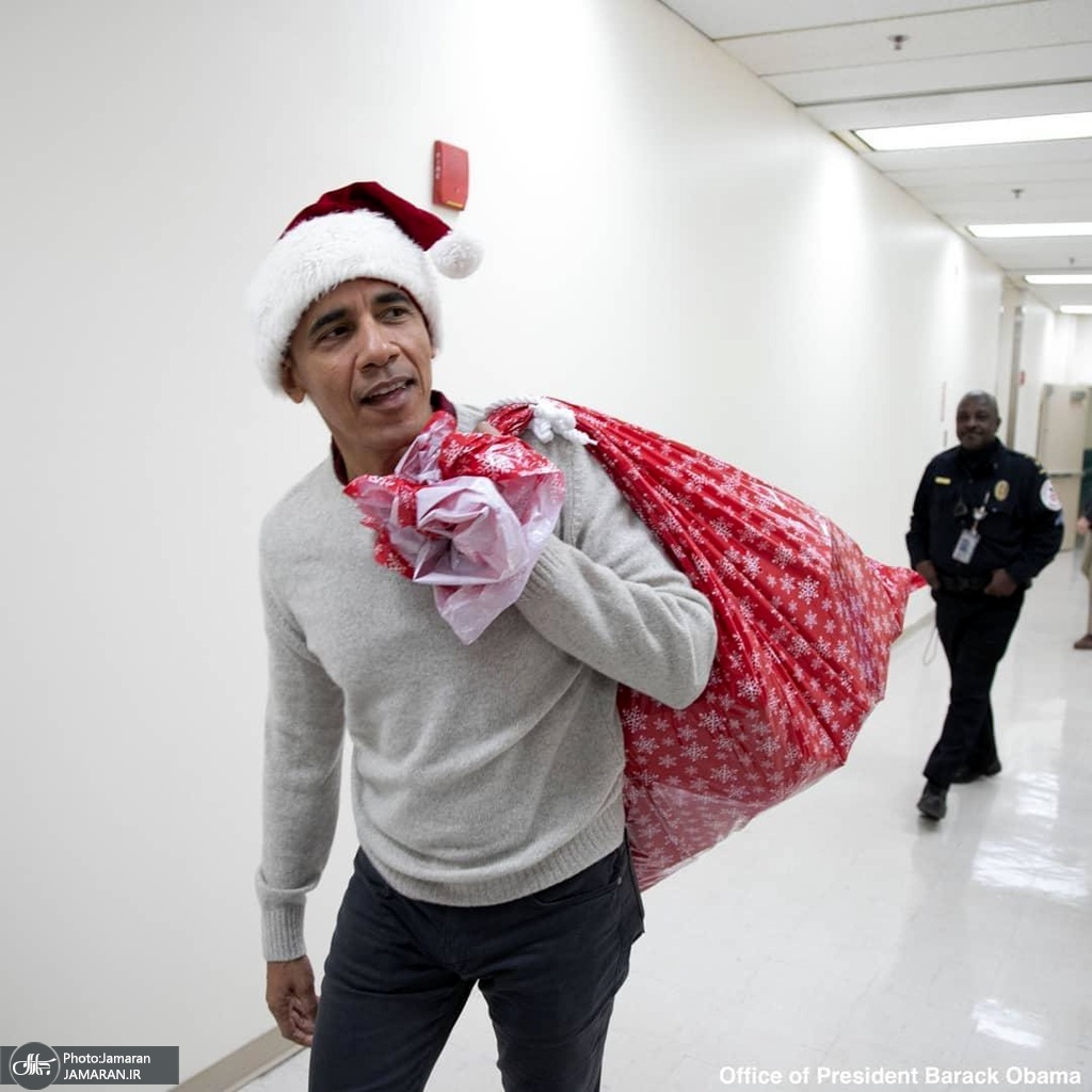 به گزارش جماران؛ باراک اوباما رئیس جمهور پیشین آمریکا به مناسبت کریسمس با کیسه بزرگی از هدایا به بیمارستان ملی کودکان در واشنگتن رفت.