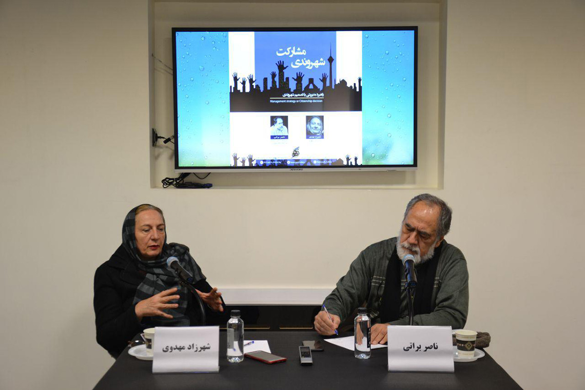 نشست “مشارکت شهروندی؛ راهبرد مدیریتی یا تصمیم شهروندی” با سخنرانی شهرزاد مهدوی کنشگر شهری و ناصر براتی عضو هیات علمی دانشگاه بین المللی امام خمینی در گالری نظرگاه برگزار شد.