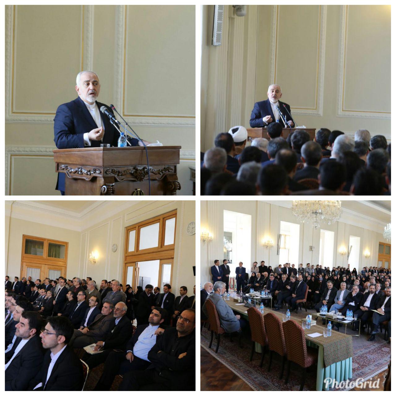رئیس دستگاه دیپلماسی گفت: وزارت خارجه نمیتواند بپذیرد که در صحنه روابط خارجی غایب باشد. دیگران نباید آن را مزاحم تلقی کنند و ما باید کاری کنیم که همه باور کنند که حضور وزارت امور خارجه به نفع آنها و دارای ارزش افزوده برای کار هر یک از دستگاهها است.
