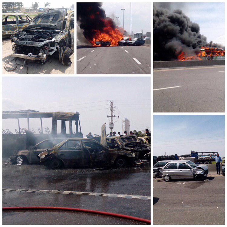 این تصادف در 20 کیلومتری تهران اتفاق افتاده و 14 مصدوم داشته است.