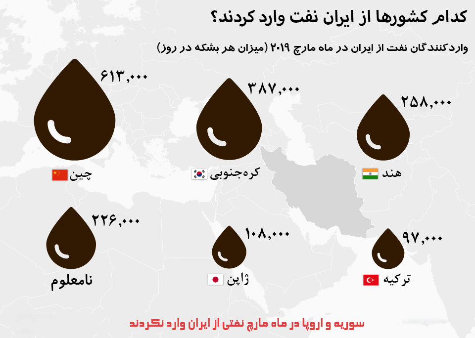 به گزارش جماران، وب سایت تحلیلی استاتیستا در گزارشی درباره میزان صادرات نفت ایران در ماه گذشته نوشت: کاخ سفید سرانجام لغو معافیت های نفتی ایران را اعلام کرد.کشورهای چین، هند، ژاپن، کره جنوبی، و ترکیه در ماه "می" دیگر نمی توانند از ایران نفت وارد کنند چرا که در این صورت با تحریم های آمریکا مواجه خواهند شد. هدف آمریکا به طور مشخص کاهش صادرات نفت ایران است که منبع اصلی دولت به شمار می رود.