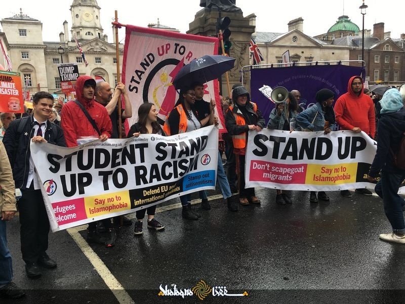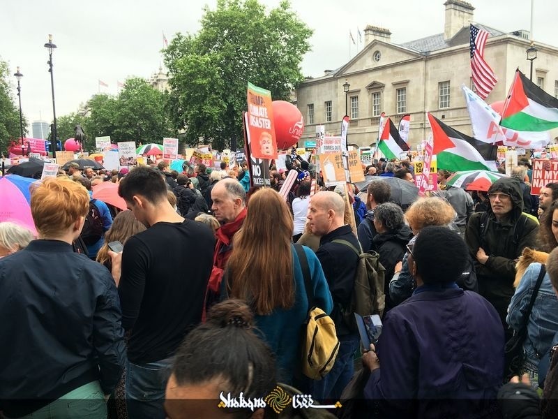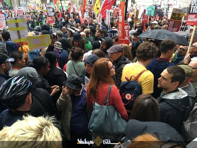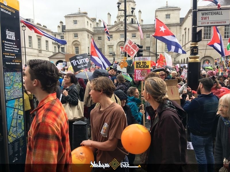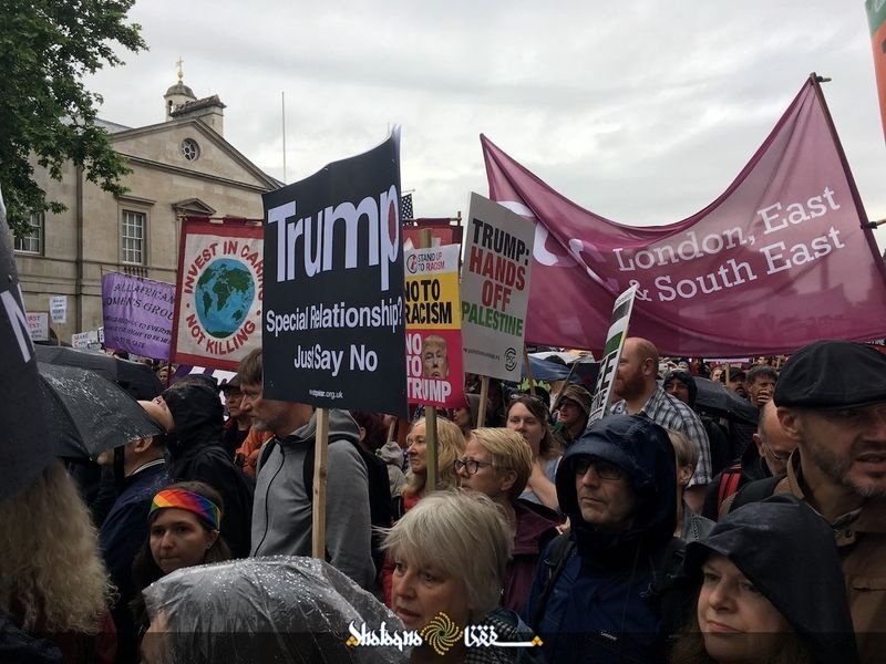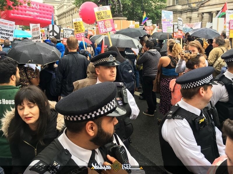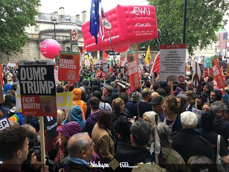 در حالی که رییس جمهور آمریکا برای یک دیدار رسمی از بریتانیا در لندن به سر می برد٫ طی دو روز گذشته مخالفان سیاست های جهانی وی به طور گسترده در لندن دست به راهپیمایی٫ تجمع و سر دادن شعارهای اعتراضی زدند به ویژه در حالی که دونالد ترامپ با ترزا می نخست وزیر بریتانیا در ساختمان نخست وزیری این کشور دیدار و گفتگو داشت این اعتراضات با حضور معرتضان در خیابان های اطراف ساختمان نخست وزیری به اوج خود رسید.