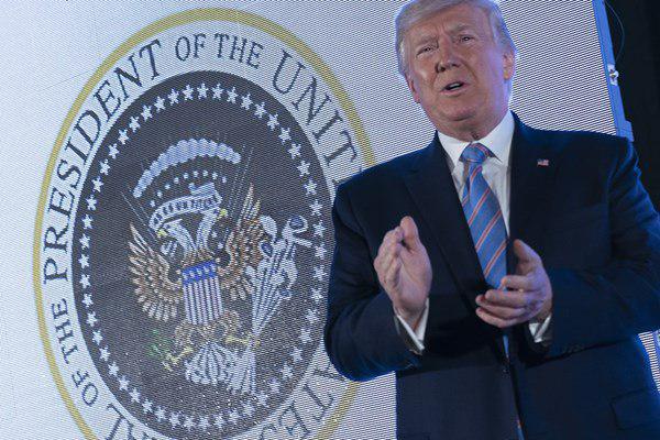 به گزارش جماران؛ هنگام سخنرانی ترامپ در جمع دانشجویان راستگرای حامی او، تصویری از نماد ریاست جمهوری آمریکا بر روی پردهای بزرگ نقش بسته بود که در نگاه اول بسیار عادی بود.