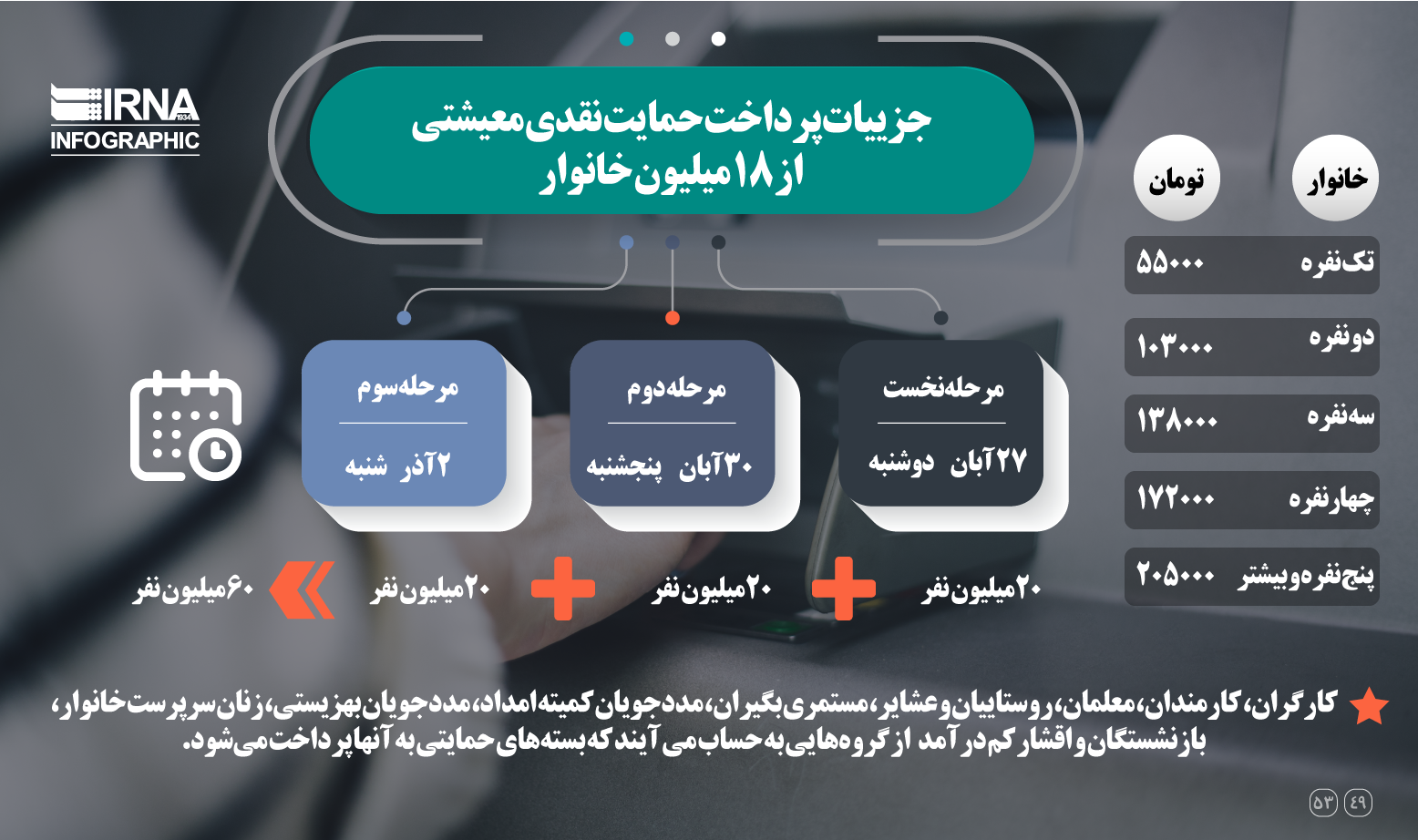 از امشب (دوشنبه) طی سه مرحله مبلغ حمایتی واریز خواهد شد.