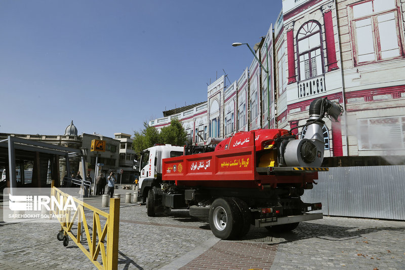به گزارش جماران؛ عملیات ضدعفونی محدوده مرکزی تهران (مناطق ۱۰ و ۱۱ و ۱۲) صبح جمعه با حضور نیروهای آتش نشانی و استفاده از خودروهای مه پاش انجام شد.