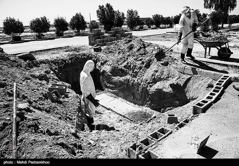 به گزارش جماران؛ این روزها به دلیل شیوع ویروس کرونا و اضافه شدن تعداد مبتلایان و فوتیها آرامستان باغ فردوس اهواز به عنوان محل جدیدی برای غسل و تدفین اموات کرونایی در نظر گرفته شده است در این آرامستان با شروع روز و آمدن اموات مراسم تغسیل و تکفین با رعایت پروتکلهای بهداشتی خاص انجام میشود و نماز میت با حضور خانواده متوفی انجام میشود و تدفین به دست مامور آرامستان که مجهز به ملابس مخصوص هستند انجام میشود