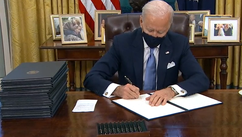 وی همچنین با صدور فرمانی آمریکا را دوباره به پیمان آب و هوایی پاریس ملحق ساخت.