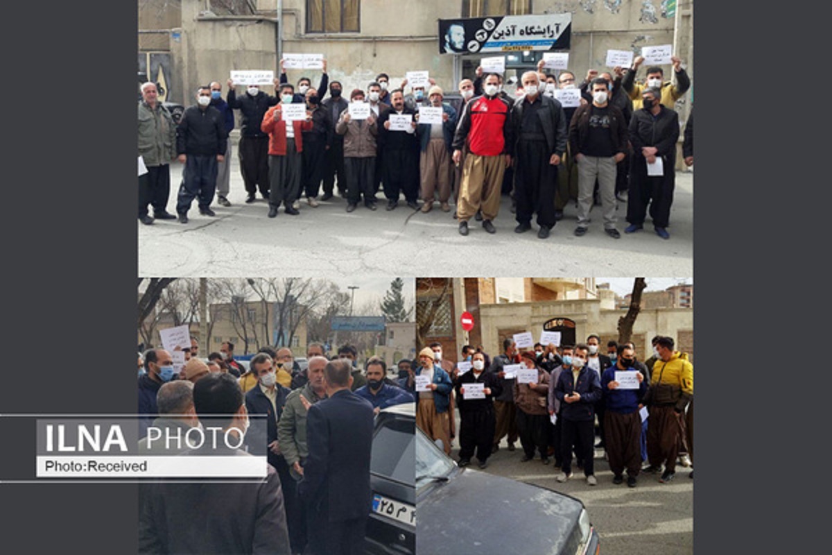 شماری از کارگران ساختمانی شهر سقز استان کردستان مقابل ساختمان تامین اجتماعی این شهر تجمع کردند.