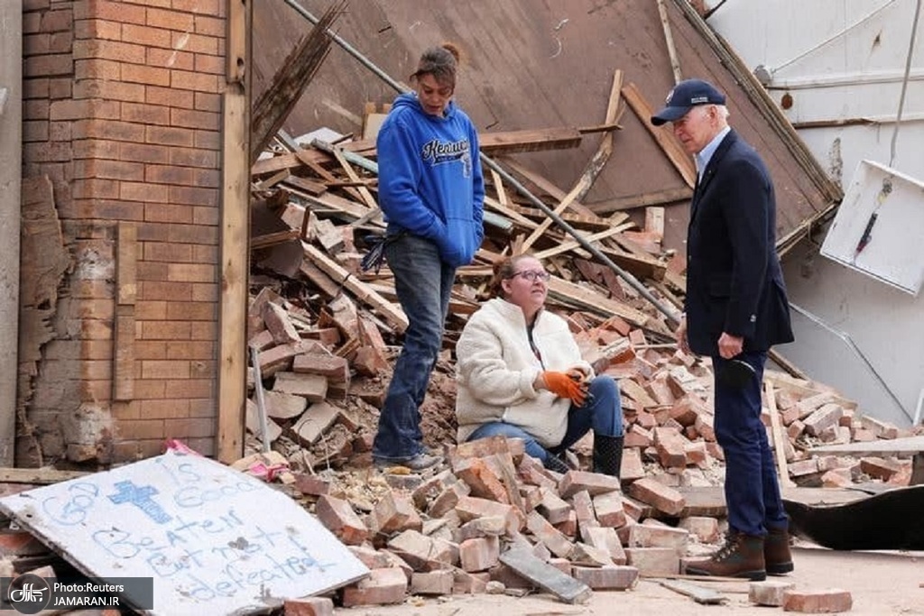 جو بایدن رییس جمهوری آمریکا از مناطق توفان زده در ایالت کنتاکی آمریکا بازدید کرد.