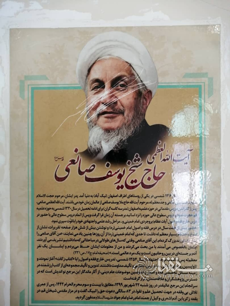 فرزند مرحوم آیت الله صانعی پیرامون تخریب تمثال آیت الله صانعی اظهار داشت: با وجود دوربین در محل آرامگاه مرحوم آیت الله صانعی، اما در دوسال گذشته تصویر ایشان را بالای ده بار تخریب کردند.