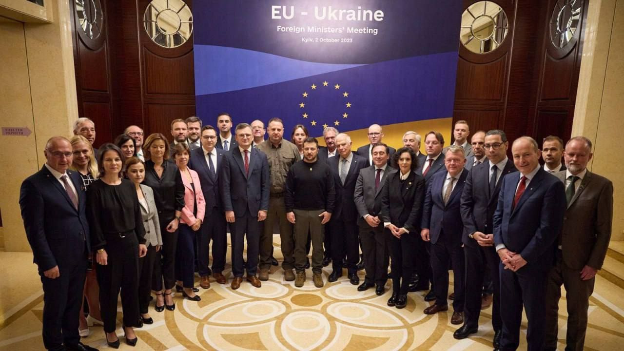 در این نشست ولودیمیر زلنسکی، رئیسجمهور اوکراین نیز در سخنانی در مقابل ۲۴ وزیر اروپایی شرکت کننده (وزرای لهستان، مجارستان و لتونی به دلایل مختلف غایب بودند) گفت که پیروزی اوکراین مستقیماً به همکاری کیف و متحدان غربی آن بستگی دارد.