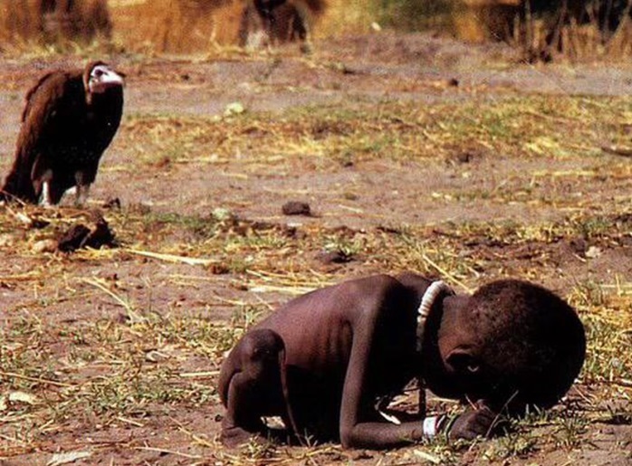 این عکس توسط عکاس خبری اهل آفریقای جنوبی، کوین کارتر، در حالی که در مأموریتی در سودان بود، گرفته شد. او چند ماه بعد به دلیل افسردگی جان خود را گرفت.