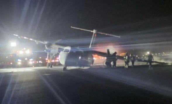 یک فروند هواپیمای ایرکانادا پس از فرود به دلیل خرابی ارابه فرود در امتداد باند فرودگاه سر خورد و آتش گرفت.