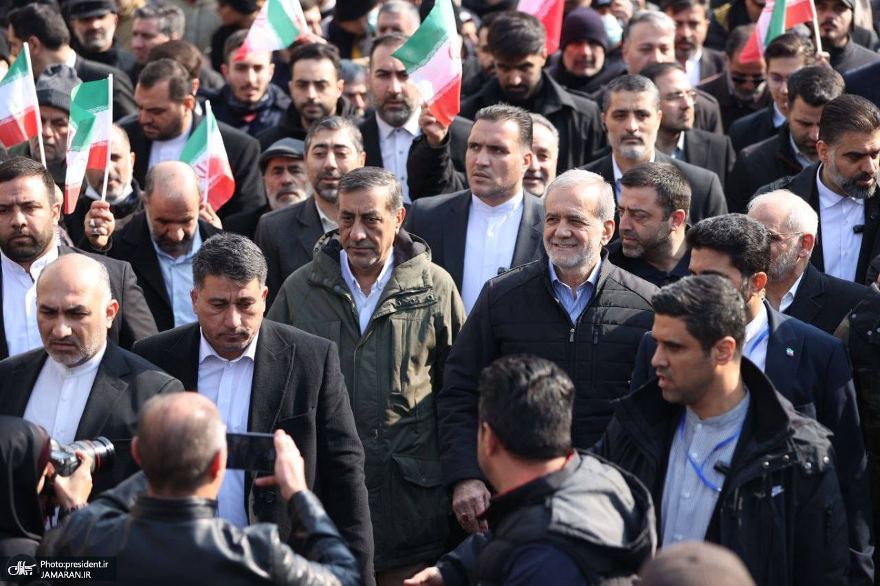 مسعود پزشکیان رئیس جمهور در جمع راهپیمایان چهل و ششمین سالروز پیروزی انقلاب اسلامی حضور یافت.