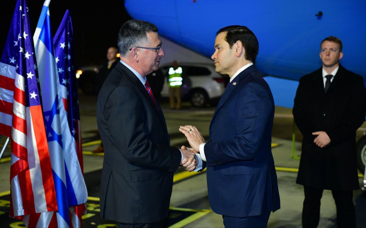 «گدعون ساعر" وزیر امور خارجه رژیم صهیونیستی در فرودگاه بین‌المللی بن‌گوریون از روبیو استقبال کرد.