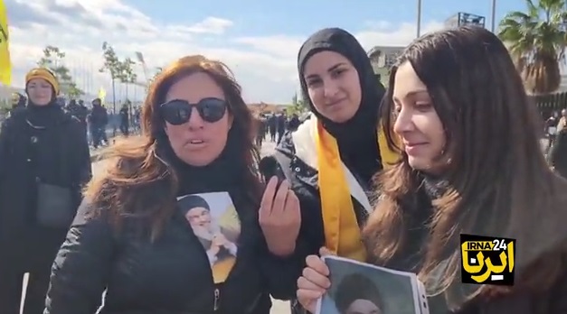 ما از جنوب لبنان هستیم، همه ما فدای سید حسن نصرالله هستیم. من از شمال آمدم، از شمال لبنان، تا مردم شریف جهان را در اینجا همراهی کنم، مردمی که اینجا حاضرند شریف ترین مردم هستند، لبیک یا سید حسن...