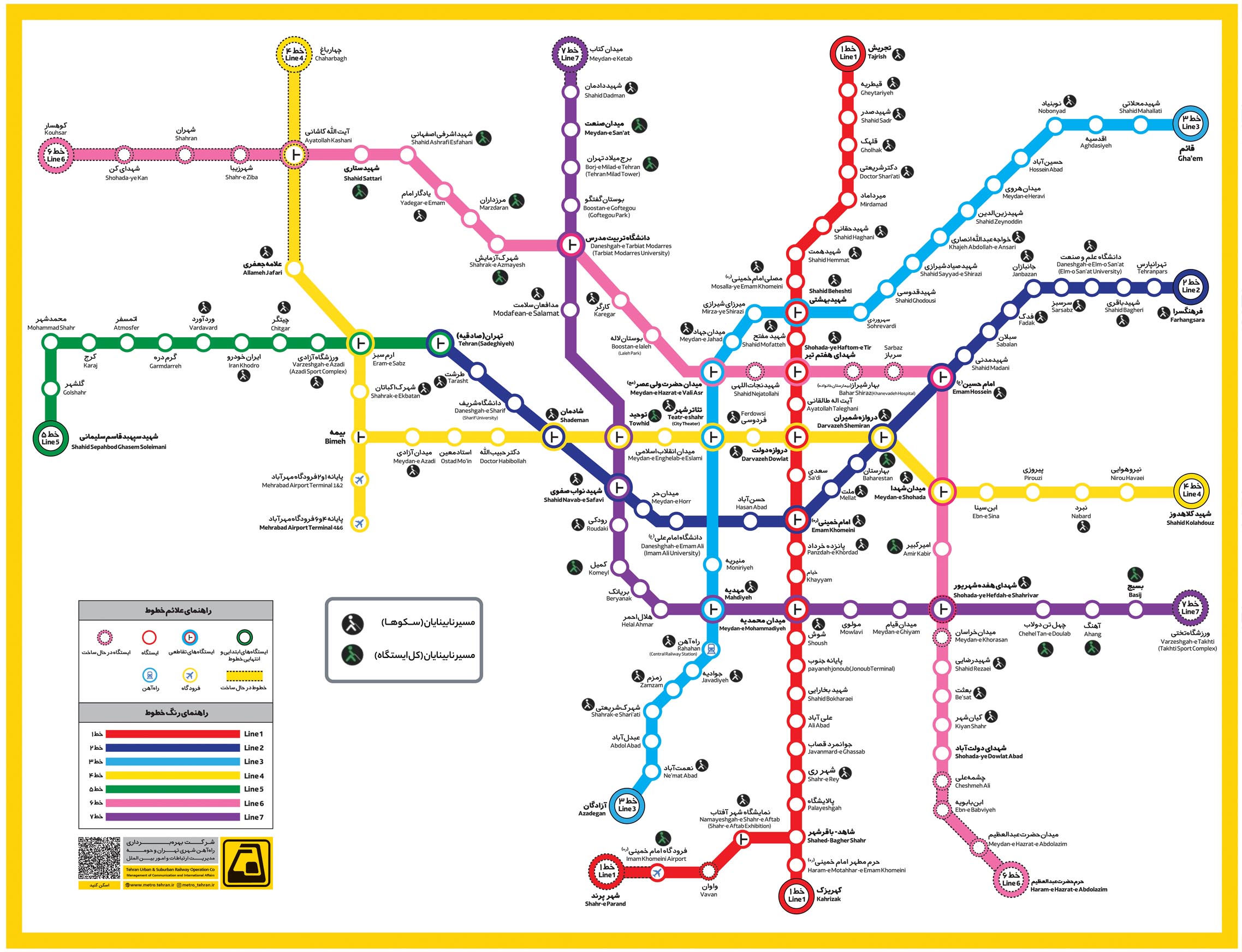 نقشه ایستگاه های خطوط راه آهن شهری تهران و حومه - مترو منتشر شد.