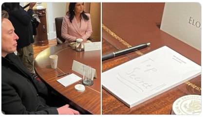 او در نشست کابینه نیز حضور کمرنگی داشت و پس از مدتی که دید در مرکز توجهات نیست... برای جلب نظر خبرنگاران و طبیعتاً در شرایط عدم تعادل روانی همیشگی خود روی دفترچه یادداشت پیش روی خودش نوشت: «فوقِ سِری»!/ منبع: انتخابات آمریکا...ادامه راه، usgelections