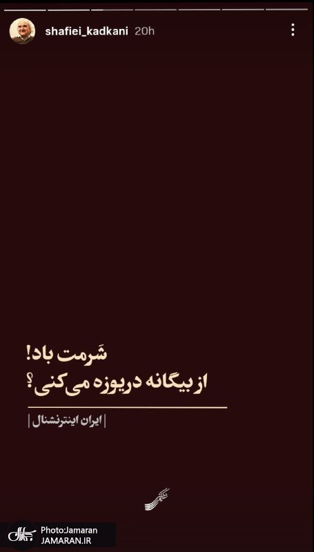 به گزارش جماران، به گزارش جماران، شفیعی کدکنی با انتقاد از رویه خبری این رسانه مستقر در خارج از کشور، در واکنشی کوتاه اما تند نوشت: «شرمت باد! از بیگانه دریوزه میکنی!؟»