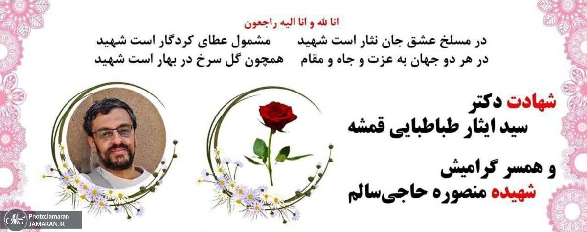 به گزارش جماران،  روزنامه دانشگاه صنعتی شریف ضمن اعلام این خبر نوشت: با حالتی سراسر تاسف، خشم و البته افتخار خبر شهادت دکتر سید ایثار طباطبایی قمشه دانشمند پرافتخار و ناشناخته‌ صنعت هسته‌ای کشور، توسط جنایتکاران صهیونیست، عصر دیروز به دستمان رسید؛ شخصیتی که در حملات اواخر هفته قبل، به همراه همسر گرامیش شهیده منصوره حاجی‌سالم در منزل‌شان ترور شدند.