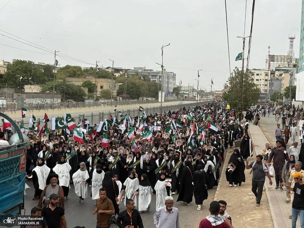 مردم در کراچی پاکستان در همبستگی با ایران راهپیمایی کردند.