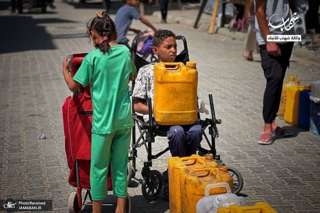 با تشدید محاصره رژیم صهیونسیتی، فلسطینیها منتظرند تا از یکی از چاههای باقیمانده در اردوگاه پناهندگان نصیرات در مرکز نوار غزه آب بردارند.
