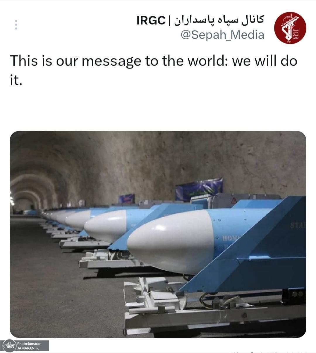 حساب رسمی سپاه در شبکه اجتماعی ایکس با انتشار پیامی کوتاه و قاطع نوشت: «این پیام ما به جهان است: ما این کار را خواهیم کرد.»
