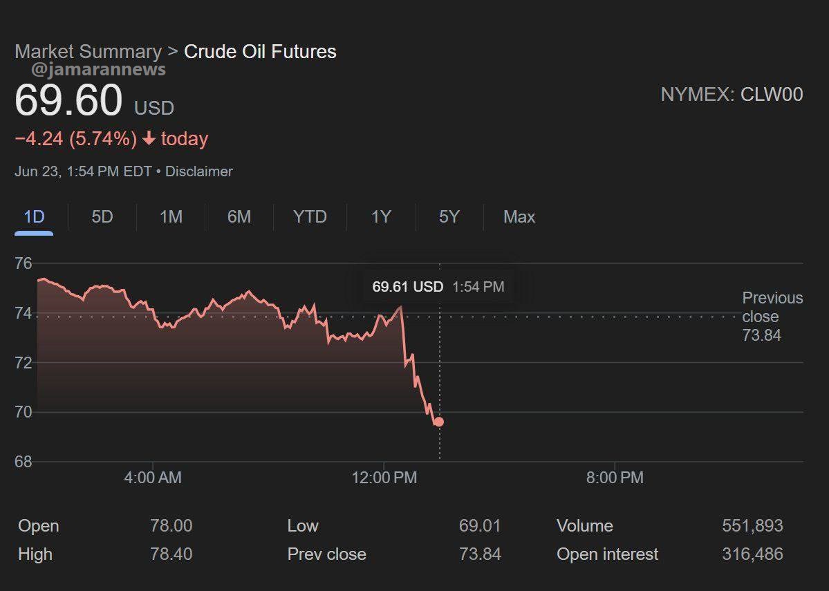 به گزارش جماران؛ قیمت نفت کماکان در حال کاهش است و به زیر ۷۰ دلار در هر بشکه رسیده است.