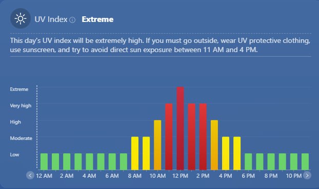 به گزارش جماران؛ شاخص اشعه فرابنفش فردا در تهران به بیشترین حد قابل ثبت خود میرسد. بهترین راه ماندن در خانه یا ساختمان محل کار است.