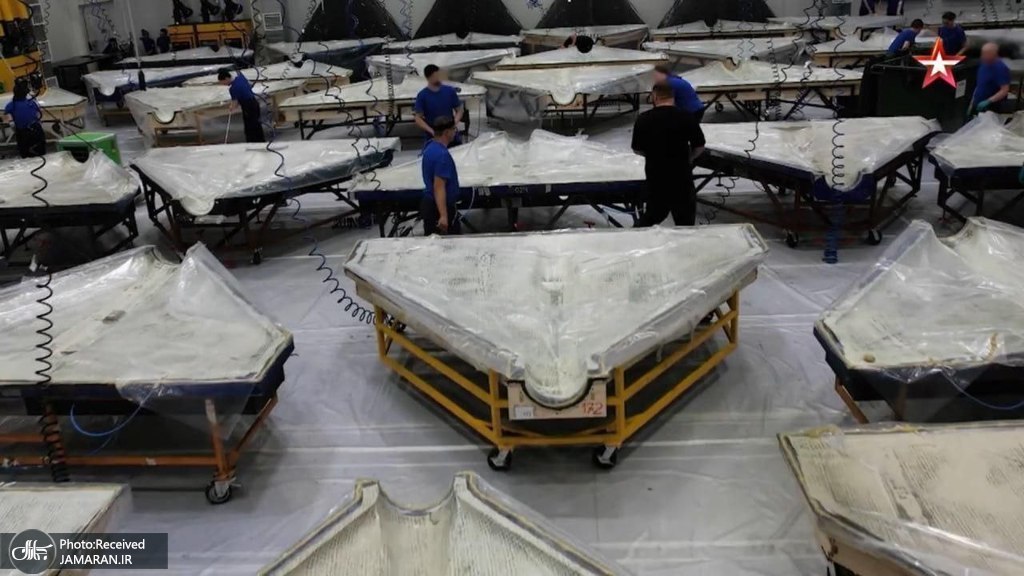 وزارت دفاع روسیه تصاویری از خط تولید انبوه پهپادهای انتحاری گرین۲ نمونه کپی شده شاهد ـ۱۳۶ در منطقه ویژه اقتصادی آلابوگا در جمهوری تاتارستان روسیه را منتشر کرد.