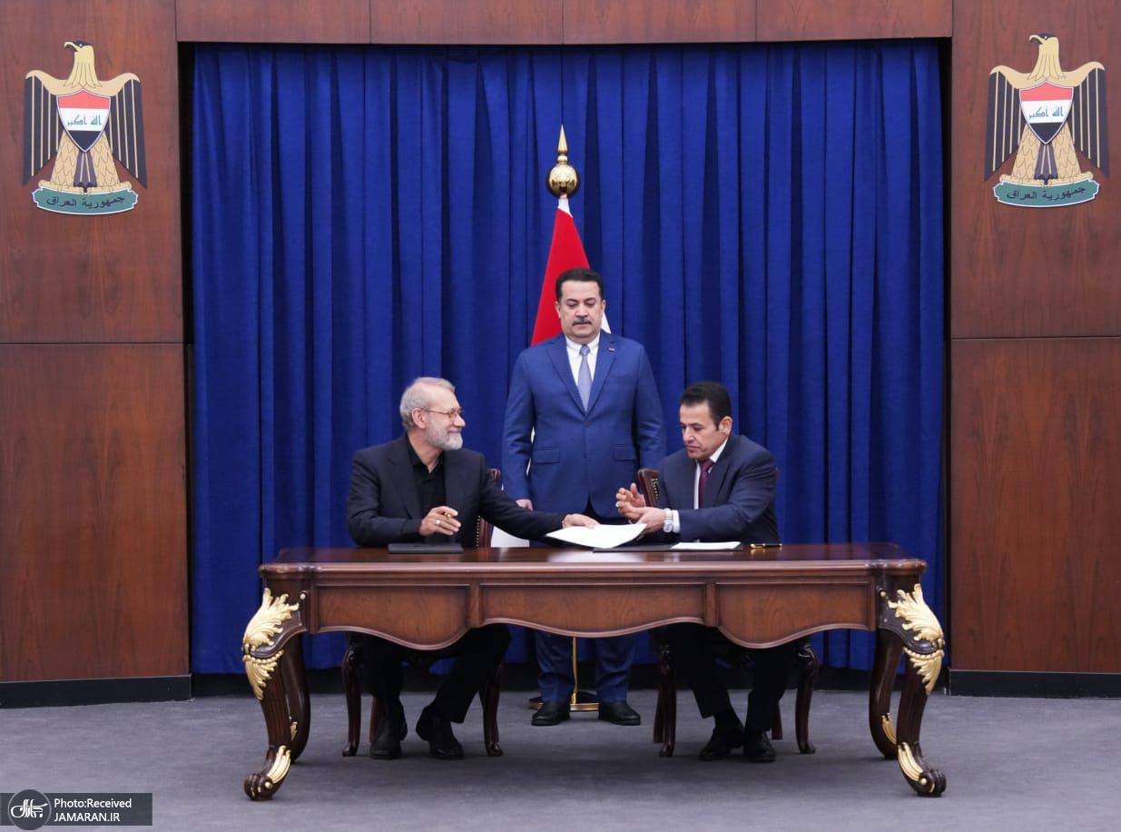 به گزارش جماران؛ تفاهمنامهٔ امنیتی مشترک بین ایران و عراق به امضای دبیر شورای عالی امنیت ملی، علی لاریجانی و قاسم الاعرجی، مشاور امنیت ملی عراق امضا شد. | بغداد | ۲۰ مرداد ۱۴۰۴
