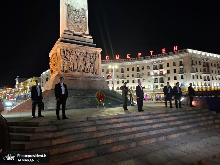 مسعود پزشکیان رئیسجمهور کشورمان در بدو ورود به بلاروس، با حضور در بنای یادبود کشتهشدگان جنگ میهنی بلاروس در میدان پیروزی مینسک، به کشتهشدگان این جنگ ادای احترام کرد.