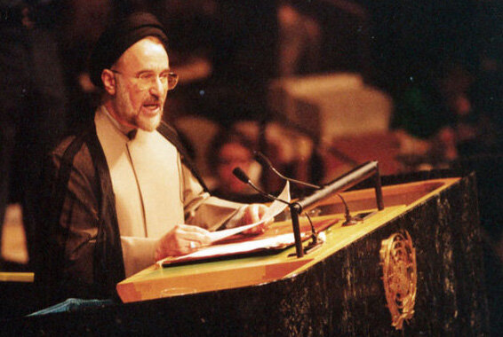 پیشنهاد میکنم که سال ۲۰۰۱ از سوی سازمان ملل، سال گفتوگوی تمدنها نامیده شود؛ با این امید که با این گفتوگو، نخستین گامهای ضروری برای تحقق عدالت و آزادی جهانی برداشته شود.