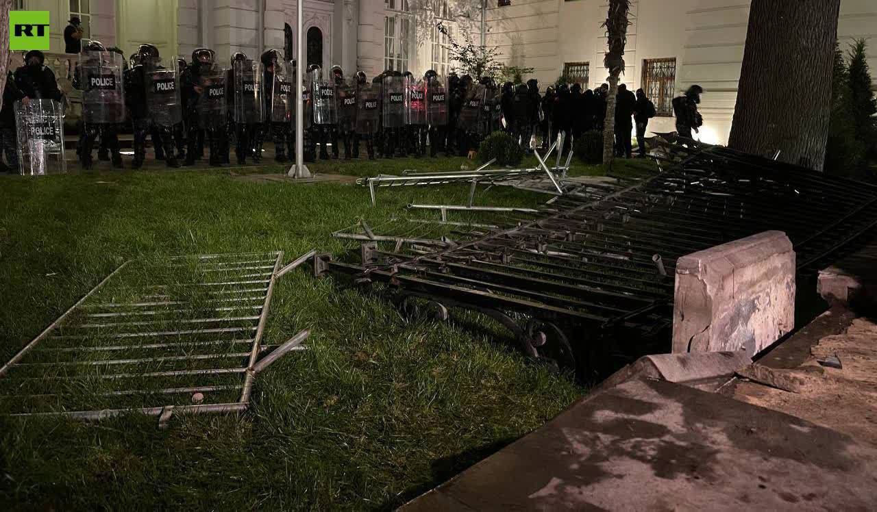 معترضان غربگرا در تفلیس شامگاه شنبه با در دست داشتن پرچم اتحادیه اروپا به سمت کاخ ریاستجمهوری گرجستان تظاهرات کرده و با عبور از موانع آهنی وارد محوطه اقامتگاه رئیسجمهور این کشور شدند.